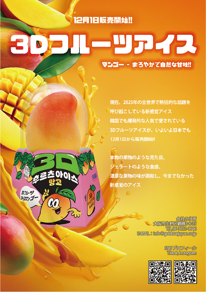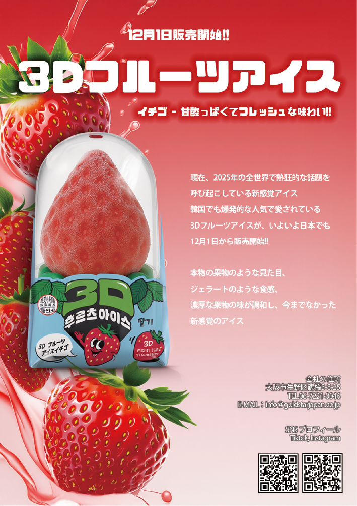 - ・レシートは 対象商品(3Dフルーツアイス)4個以上の購入が確認できるもののみ有効 です。 ※複数レシートの合算不可。対象商品4個分の購入が1枚のレシートで確認できるもの